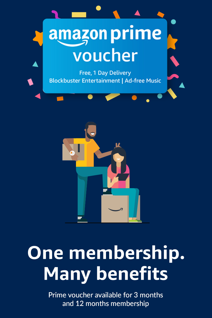 Pay for your Prime Subscription with Prime Voucher and unlock endless possibilities, from award-winning films and TV shows to ad-free music and unlimited e-book access. Plus, enjoy lightning-fast shipping and early access to exclusive deals.