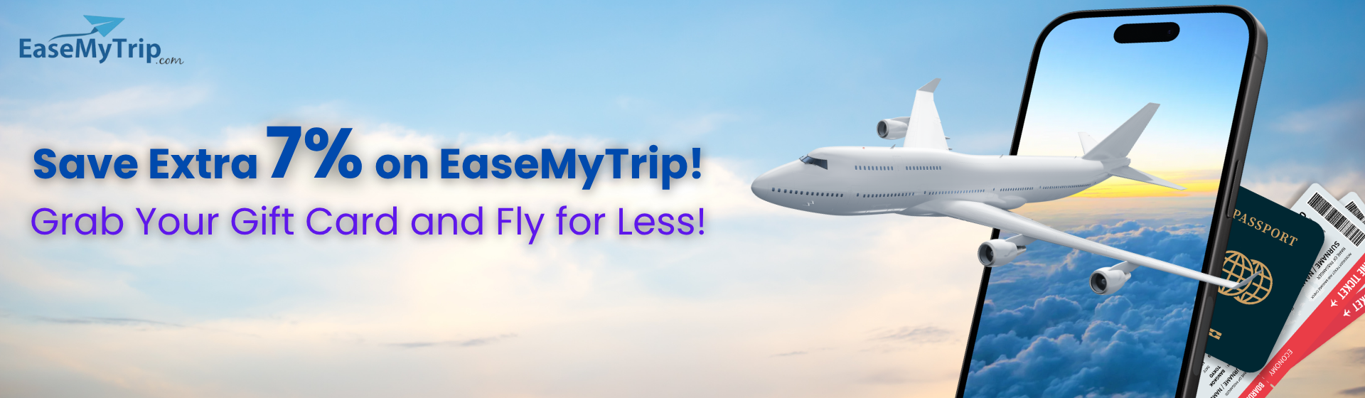 Make your flight bookings more rewarding with the EaseMyTrip Gift Card Enjoy an exclusive 7%when you use promo codeEASE7 at the time of purchase. Whether you’re jetting off on a vacation, flying for business, or planning a family trip, this gift card is designed to lower your travel expenses and offer unbeatable value. What makes it even better? EaseMyTrip Gift Card! It's the ultimate travel companion, perfect for gifting to frequent flyers or using yourself for smarter spending on every trip. Travel smarter, save bigger, and enjoy seamless journeys