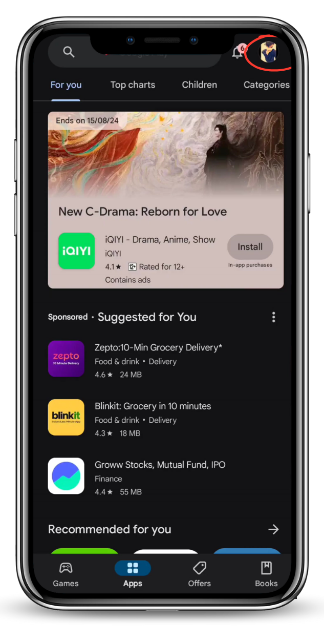 Click on your profile icon in the top right corner to proceed with the next steps to redeem your code. Make sure you're signed in to your account.
