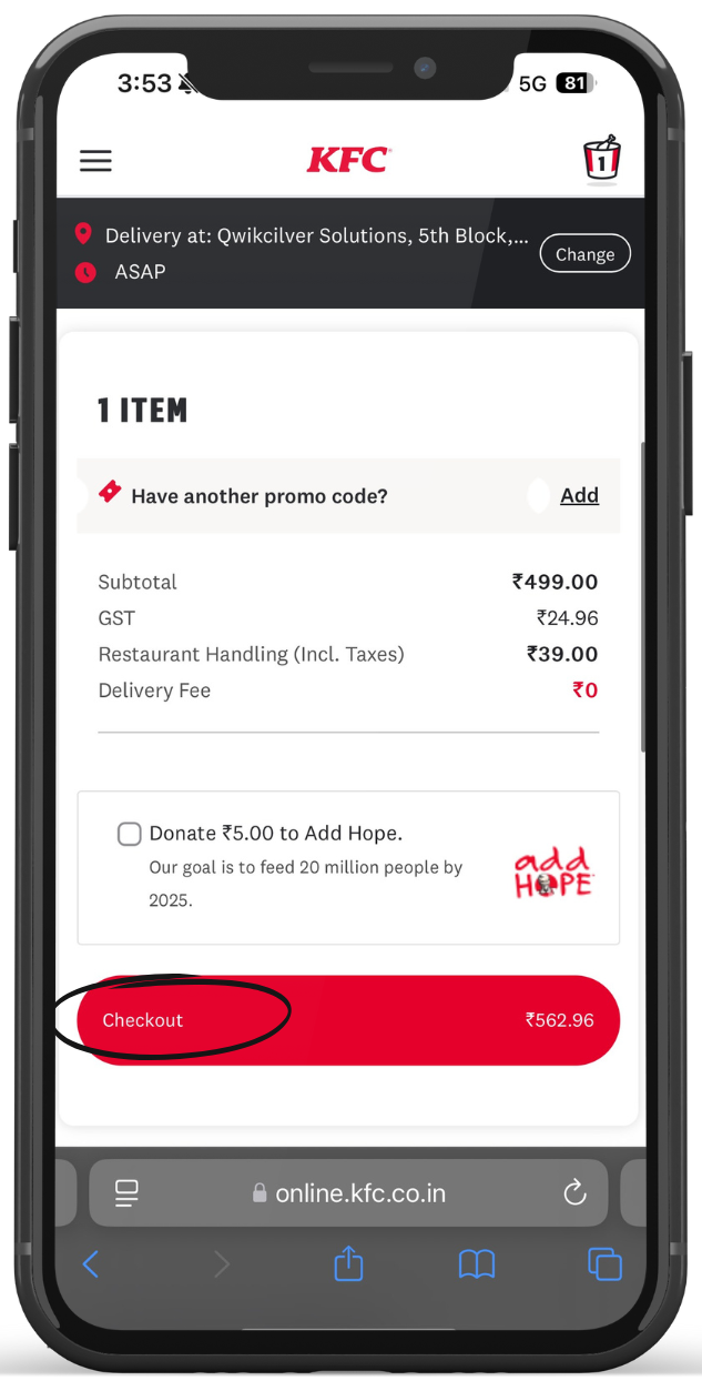 Visit KFC outlet.