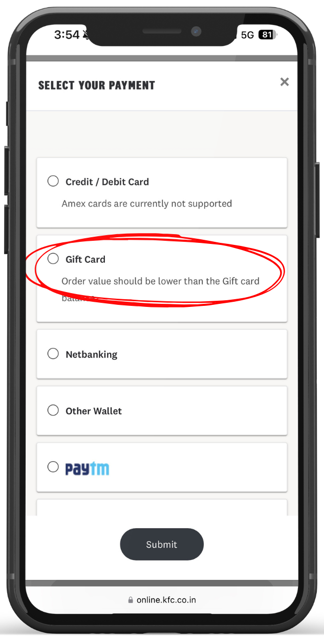 Step to Redeem KFC E-Gift Card (Outlet)