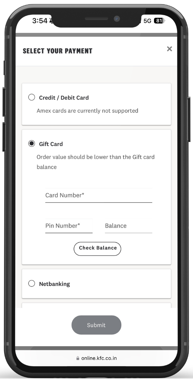 Step to Redeem KFC E-Gift Card (Online)