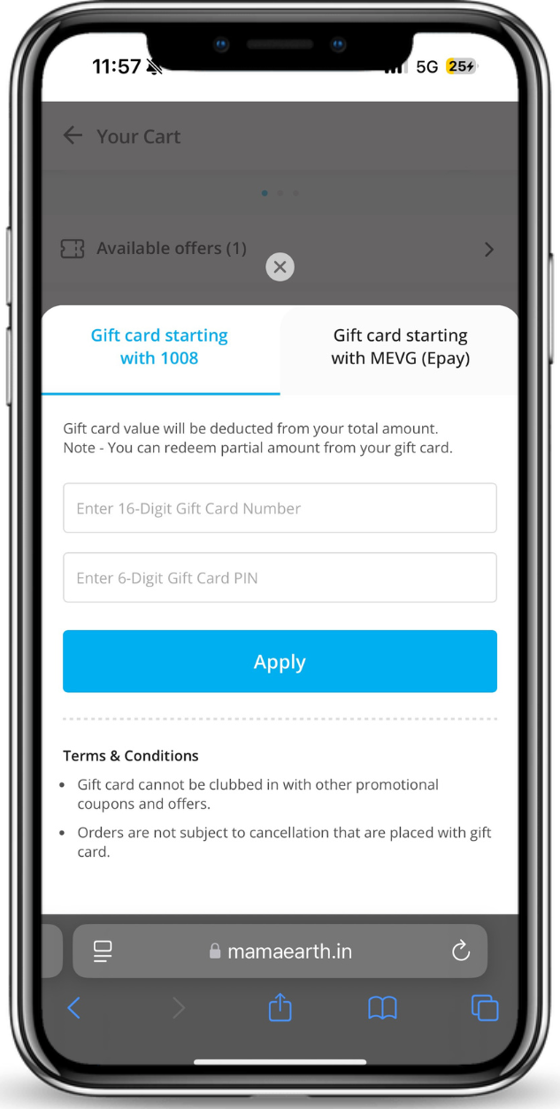 For instance, if you’ve already used a Mamaearth coupon code to get 10% off on your order, adding the E-Gift Card as your payment method boosts your total savings to a significant amount. To enjoy this benefit, simply choose ‘Gift Card’ as your payment mode during checkout—it’s that easy! Don’t miss out on maximizing your savings with Mamaearth E-Gift Cards. Leverage Mamaearth coupon codes and exclusive gift card discounts to grab the best deals today!
