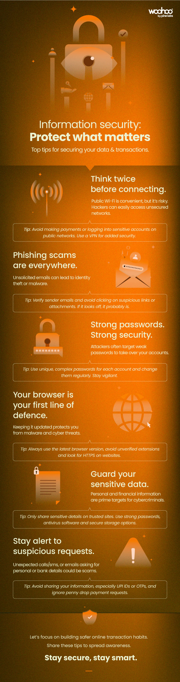 At Woohoo by Pine Labs, we’re dedicated to helping customers stay secure with simple and effective practices. From strong passwords to staying alert against phishing, together we’re building a safer payments landscape.