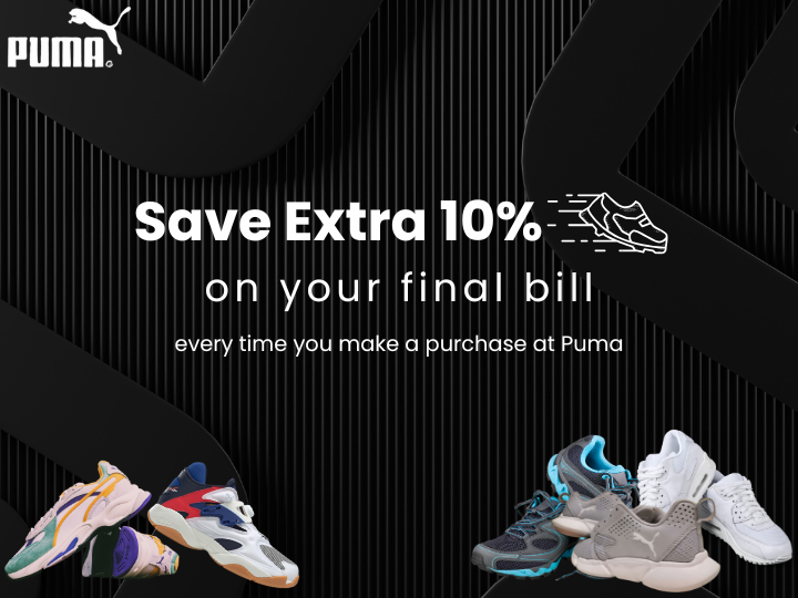 Woohoo, India’s largest gift card store, offers you an instant flat 10% discount on Puma. By using this Puma gift card as a payment mode, you will get an additional 10% discount on top of all the existing deals on Puma.