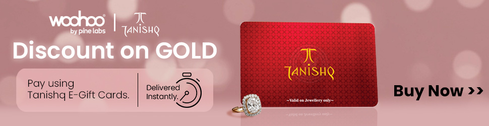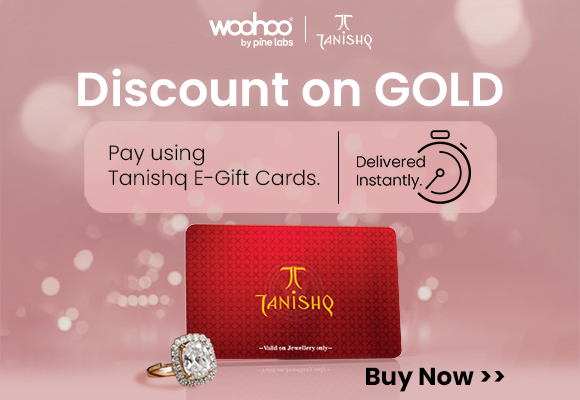 If you're buying gold, diamonds, or gold coins from Tanishq, here's a tip to get extra discounts: pay your bills using Tanishq gift cards. You can buy a discounted Tanishq gift voucher from Woohoo and use it to pay your final bill.