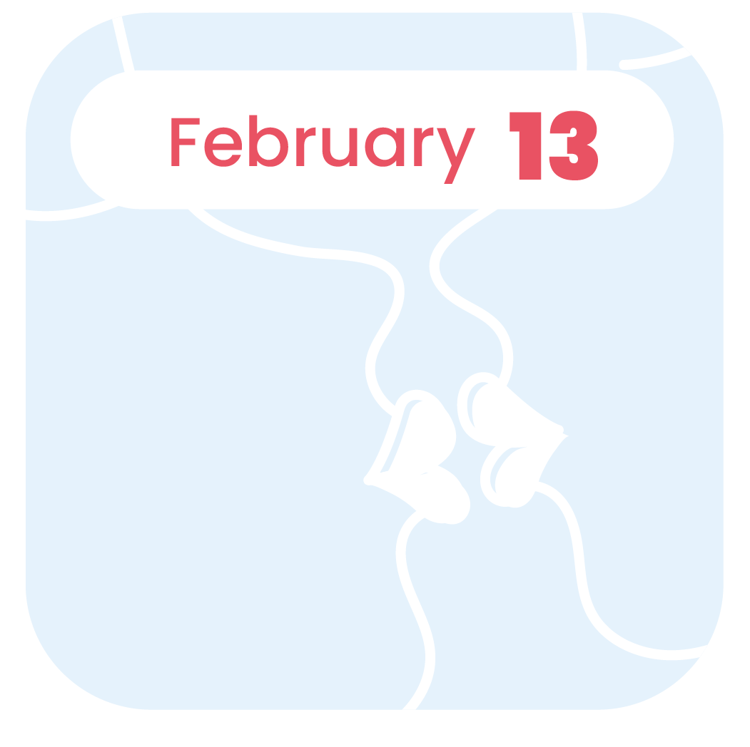 Celebrated on February 13, on this day, new lovers share their first kiss of commitment, a kiss that means much more than all those stolen kisses behind peoples’ backs. This kiss means you’ll stick together no matter what. So find the perfect spot, hand over your thoughtful gift, and seal your promise with a tender kiss.