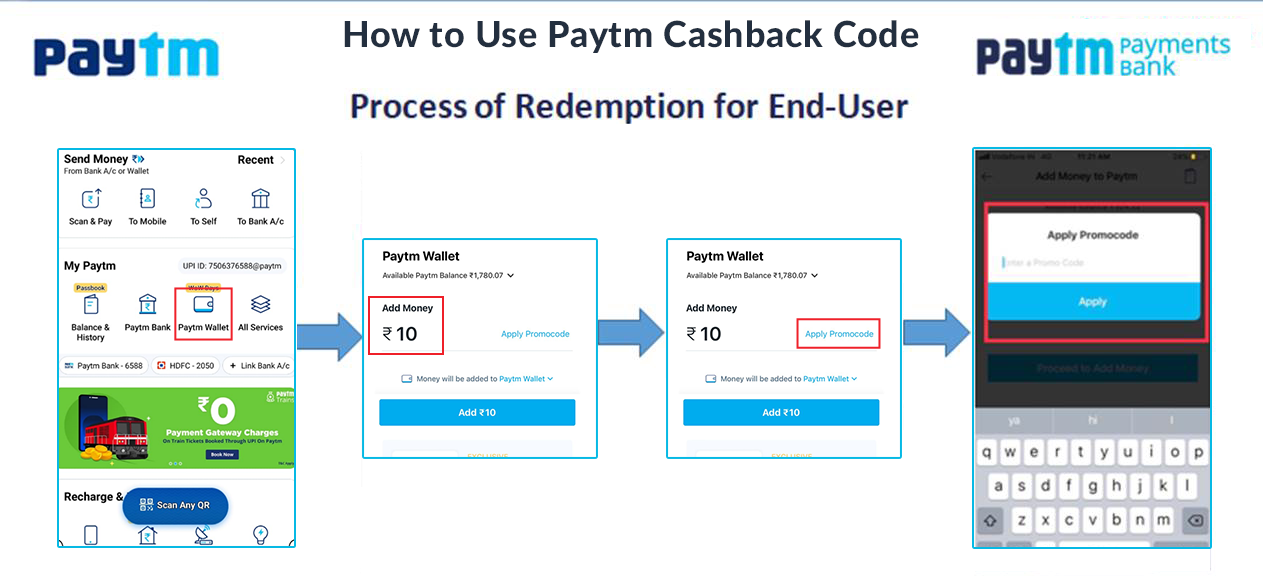 - PutINR(winning cashback in Amount & click on “Apply Promo”